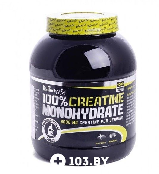 BioTech 100% Creatine Monohydrate 1000 - увеличивает задержку воды в клетках мускул, тем самым обеспечивает все необходимые условия для синтеза белков после физических нагрузок.
