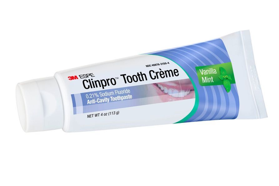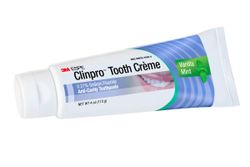 Зубная паста (крем) для профилактики кариеса, содержащая 0,21% натрия фторида (весовое соотношение). Паста разработана специально для пациентов, нуждающихся в реминерализации твердых тканей зубов и снятии симптомов повышенной чувствительности. Во время чистки зубов пастой-кремом Clinpro Tooth Crème материал вступает в реакцию со слюной, выделяя кальций и фтор, способствуя тем самым реминерализации эмали и предотвращению развития кариеса.