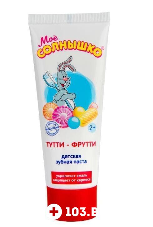 Реализация товара Детская зубная паста Тутти-фрутти, 100 г Мое солнышко осуществляется только в стационарном торговом объекте по указанному адресу продавца. Информация о товарах и услугах на портале 103.by носит справочный характер и не является публичной офертой.