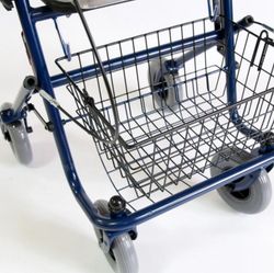RollQuattro - ролятор с четырьмя литыми колесами, сиденьем, съемными корзиной и подносом. Такой ролятор предназначен для пожилых людей и для пациентов на поздней стадии реабилитации. Во время передвижения можно воспользоваться сиденьем для отдыха. Модель оснащена ручными тормозами.