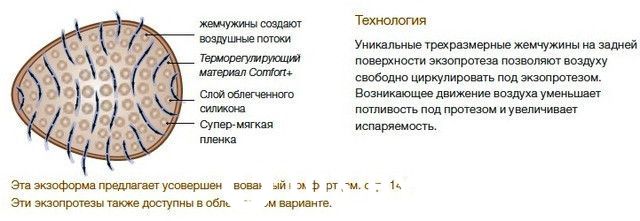 Мягкое покрытие из трехмерных жемчужин, плюс дополнительные вентиляционные каналы максимально увеличивают вентиляцию и помогают коже дышать под протезом.