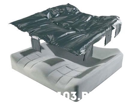 Контактная поверхность между пациентом и наполнителем подушки защищается гелевой подушкой, отводящей давление от выступающих костных элементов скелета пациента. Дополнительный слой геля расположен под седалищной и крестцовой зонами, улучшает противопролежневые свойства подушки и позволяет использо вать её пациентами с крайне высоким риском образования пролежней.