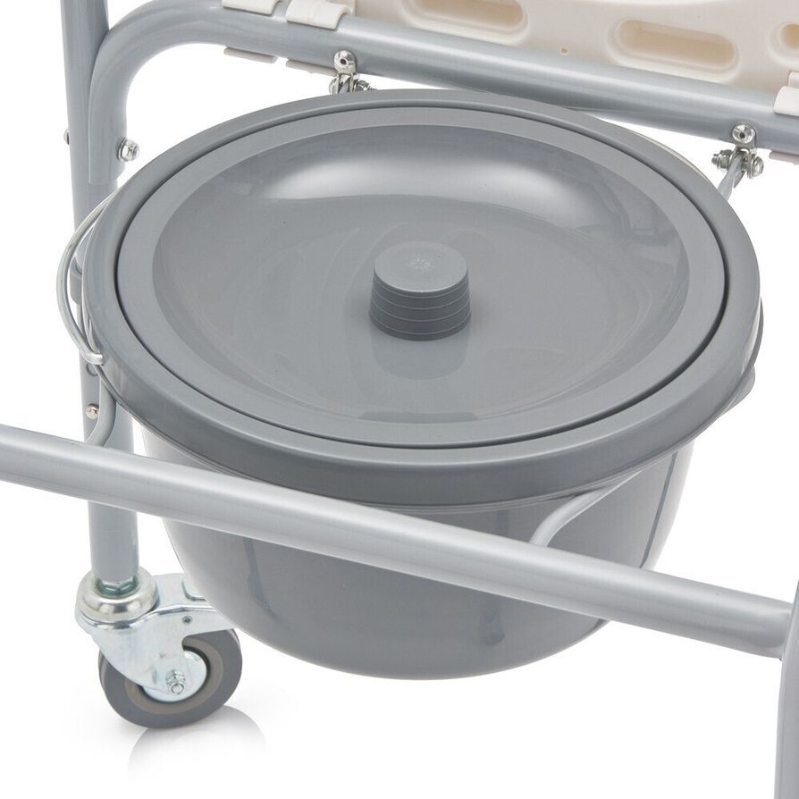 Кресло оборудовано санитарной емкостью и колесами, подходит для отправления естественных нужд, но не для длительной транспортировки пациента.