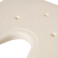 Основными особенностями стула являются наличие гигиенического выреза и боковых рукоятей. Собирать и разбирать изделие можно без использования инструментов. Ножки съемные и обладают противоскользящими насадками.