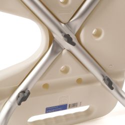 Стул можно настроить по высоте, используя телескопическую конструкцию. Рама изготовлена из алюминия, из-за чего изделие является одновременно легким и прочным.
