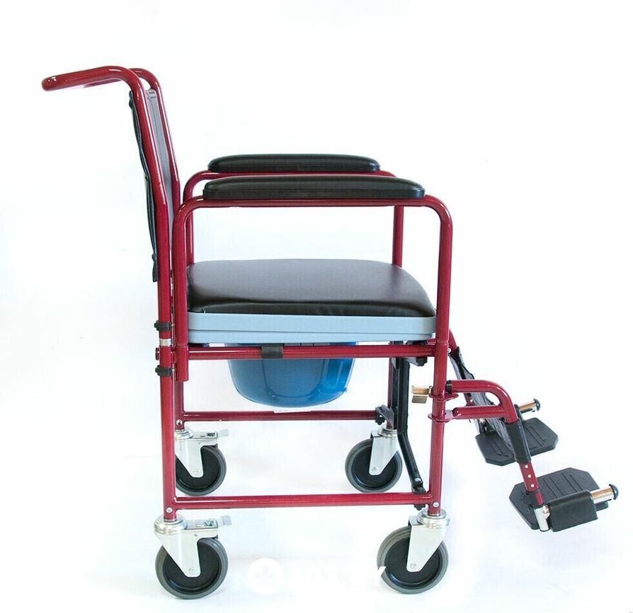 В кресло-коляску встроено съемное устройство для туалета. Для удобства использования модель также оснащена съемными подножками и сидением, подвижными подлокотниками, что позволяет трансформировать ее в более компактный вариант для транспортировки или хранения. Перемещать изделие достаточно удобно, благодаря пластиковым колесам. Для фиксации задних колес предусмотрены специальные стояночные тормоза.