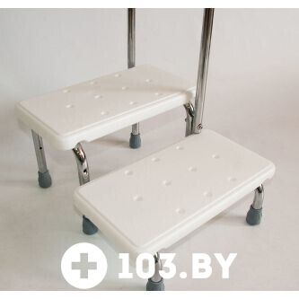 KJT569 — лесенка для ванной, которая оснащена поручнем. Ею пользуются пожилые или больные люди, которым сложно самостоятельно принимать водные процедуры.