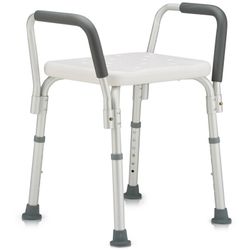 Стул для ванной комнаты cо съемными подлокотниками, предназначен для ухода за больными в условиях стационара или в домашних условиях. Рама выполнена из анодированного алюминия и не подвергается коррозии. Резиновые наконечники на всех 4-х ножках препятствуют скольжению, не оставляя следов на поверхности и способствуют безопасности пациента. Сидение и спинка выполнены из высокопрочного полиэтилена. Высота сидения регулируется кнопочным фиксатором с шагом 2,5 см. Быстросъемные подлокотники для удобства пользователя имеют нескользящее покрытие в зоне хвата, а также снабжены кнопочными фиксаторами.