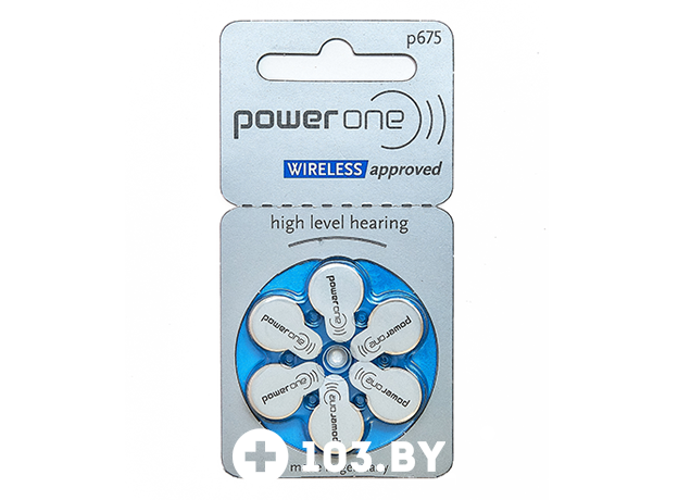 Батарейки PowerOne №675 для слуховых аппаратов заушного типа и речевых процессоров кохлеарных имплантов. Не содержат ртути.