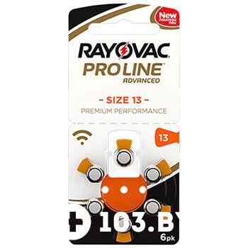 Воздушно-цинковые батарейки №13 Rayovac Proline Advanced для слуховых аппаратов заушного типа (BTE).