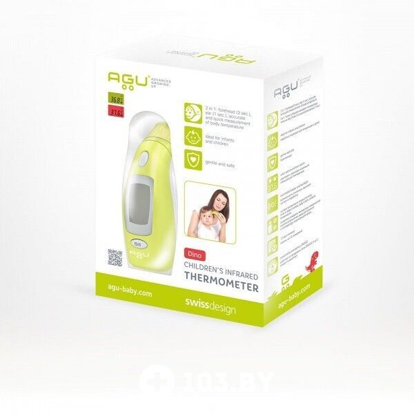 Инфракрасный термометр AGU создан специально для быстрого и точного измерения температуры тела у новорожденных и малышей. Благодаря использованию технологии термометр при каждом измерении показывает точные показания температуры, не зависящие от внешнего теплового воздействия. В режиме измерения в ушной раковине (без колпачка) прибор может также измерять температуру поверхностей (молоко в бутылочке, вода для купания) и температуру окружающей среды. Точный, быстрый, компактный и легкий термометр.