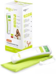 Бесконтактный термометр AGU измеряет температуру, не касаясь ребенка. Требуется 1 секунда для проведения измерения с точностью ± 0,2 ºC. Прибор сигнализирует об окончании измерения, особый сигнал подается в случае, если температура выше нормы. При помощи прибора можно измерять также температуру поверхностей и жидкостей.