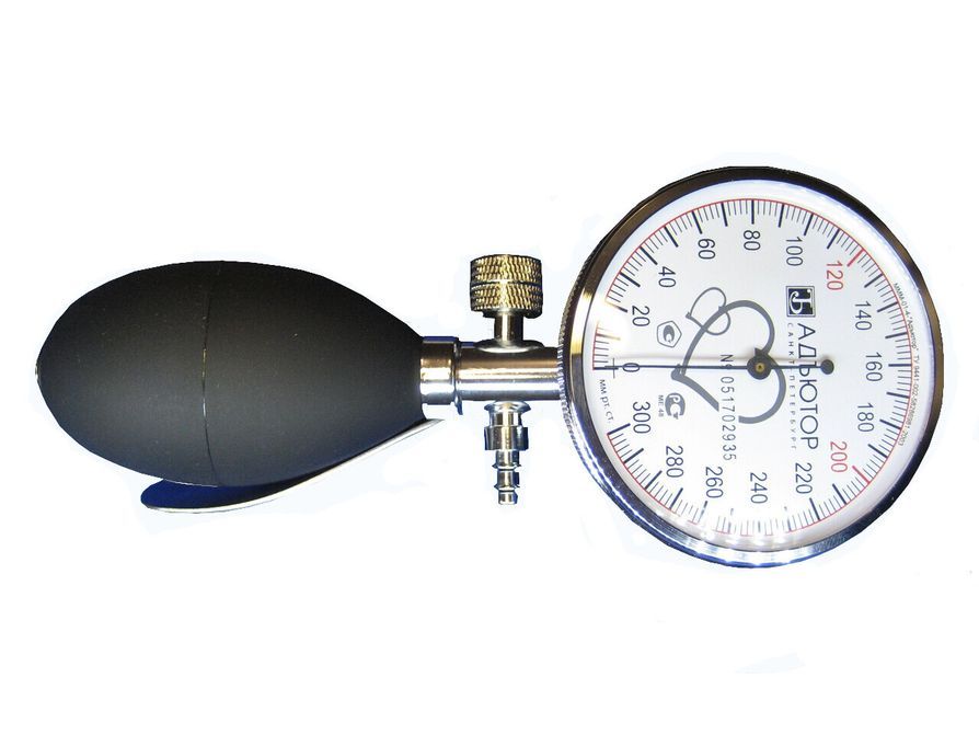 Манометр совмещенный с нагнетателем , специальная комплектация. Комбинированный тип. Точный манометр с большим легко читаемым циферблатом жестко совмещен с нагнетателем в одно целое. Это позволит сделать процесс измерения давления более удобным, а также позволяет использовать не 2-трубочную, а 1-трубочную пневмокамеру, что позволит повысить надежность прибора в целом . Металлический корпус манометра с серебристым покрытием. Адаптирован для работы как правой , так и левой рукой.