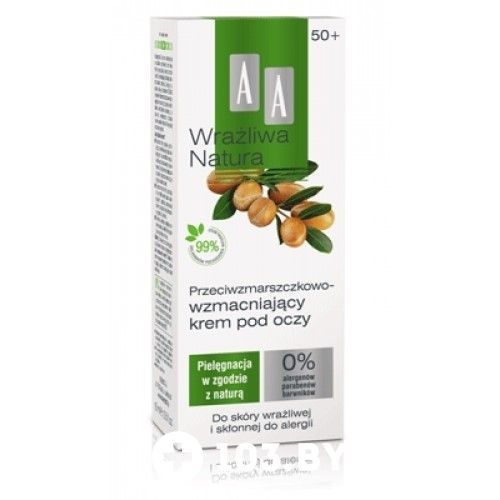 Крем для кожи вокруг глаз против морщин AA Sensitive Nature 50+ питает, увлажняет нежную кожу вокруг глаз, разглаживает морщины, улучшает тонус кожи и устраняет ее дряблость, подтягивает кожу.