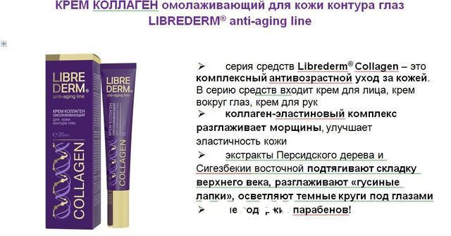 Указанная цена на Коллаген крем омолаживающий для кожи контура глаз LIBREDERM может отличаться от фактической. Если в описании или цене вы заметили неточность или ошибку, пожалуйста, сообщите нам на почту help@103.by.