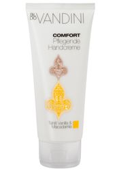 Активные компоненты макадамия и ваниль обеспечивают оптимальный водно-жировой баланс кожи, питают, увлажняют и смягчают её. Укрепляет липидный барьер и улучшает структуру кожи. Замедляет процесс старения кожи. Подходит также для сухой, потрескавшейся и чувствительной кожи. Аромат ванили успокаивает и снимает напряжение. Разглаживающий крем для рук увлажняет и устраняет ощущение стянутости кожи.