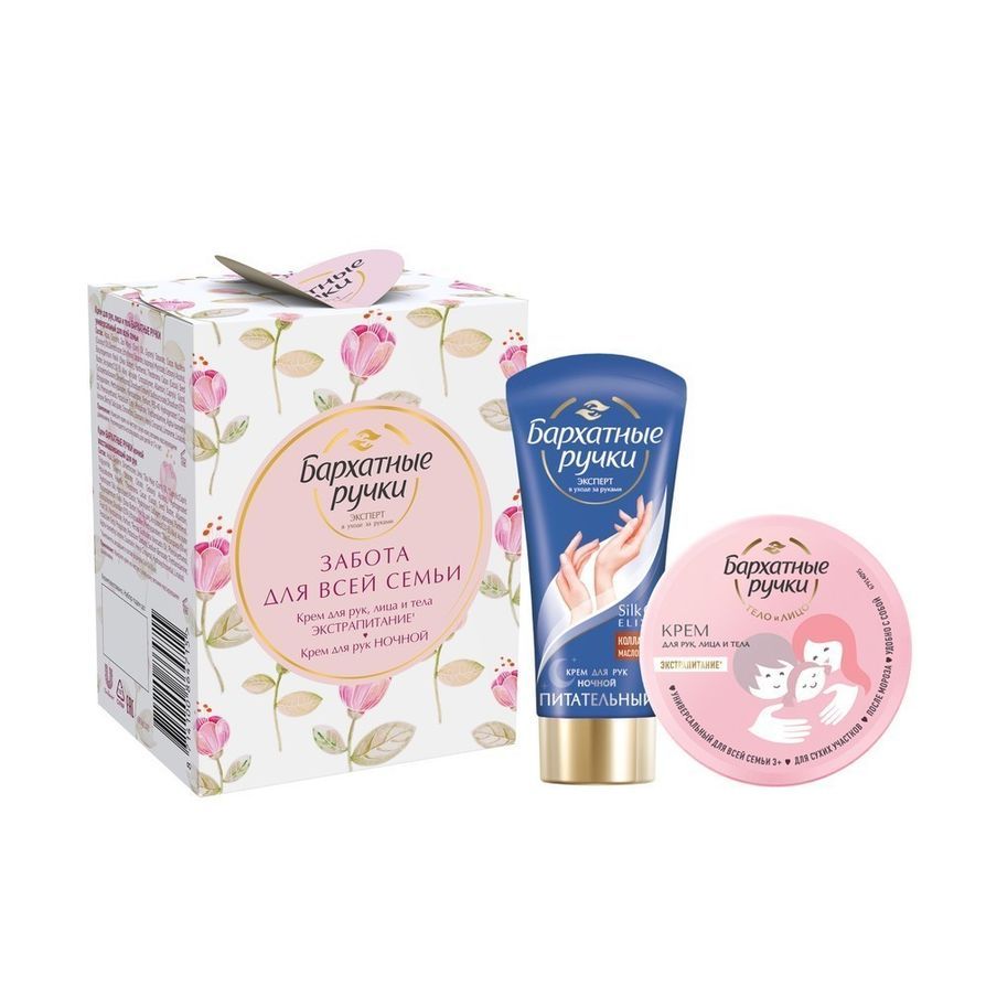 Реализация товара Подарочный набор «Забота для всей семьи» с кремом для рук (43 мл) и кремом универсальным (50 мл) Бархатные ручки осуществляется только в стационарном торговом объекте по указанному адресу продавца. Информация о товарах и услугах на портале 103.by носит справочный характер и не является публичной офертой.
