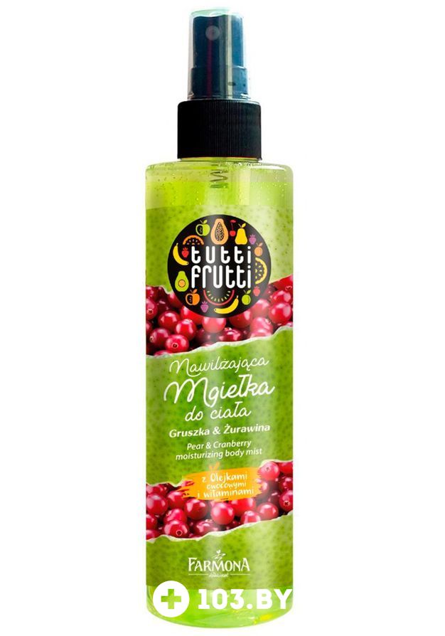 Реализация товара Средство для тела Tutti Frutti Груша & Клюква увлажняющее в спрее 200 мл Farmona осуществляется только в стационарном торговом объекте по указанному адресу продавца. Информация о товарах и услугах на портале 103.by носит справочный характер и не является публичной офертой.