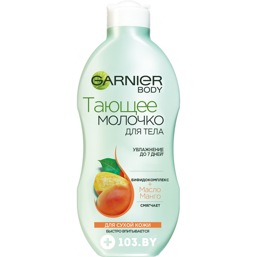 Тающее молочко для тела с уникальным сочетанием активных компонентов - Бифидокомплекса и Масла Манго - защищает и превосходно смягчает кожу. Ежедневное негативное воздействие окружающей среды (горячая вода, сухой воздух, трение одежды) приводит кожу тела к быстрой потере влаги, даже если Вы не ощущаете этого, либо, напротив, чувствуете дискомфорт и сухость, даже если увлажняете кожу каждый день. Потеря влаги может привести к ухудшению внешнего вида кожи, её преждевременному старению. Тающее молочко для тела Гарньер Природная Забота увлажняет кожу настолько интенсивно, что даже при прикращении его использования, Вы ощущаете увлажнённость кожи до 7 дней. Формула молочка содержит Бифидокомплекс, созданный по аналогии с пробиотиками йогурта и способный оптимизировать естественный водный баланс кожи. Масло Манго, богатое важнейшими питательными веществами, эффективно смягчает и разглаживает кожу, возвращая ей красоту и невероятное ощущение комфорта.