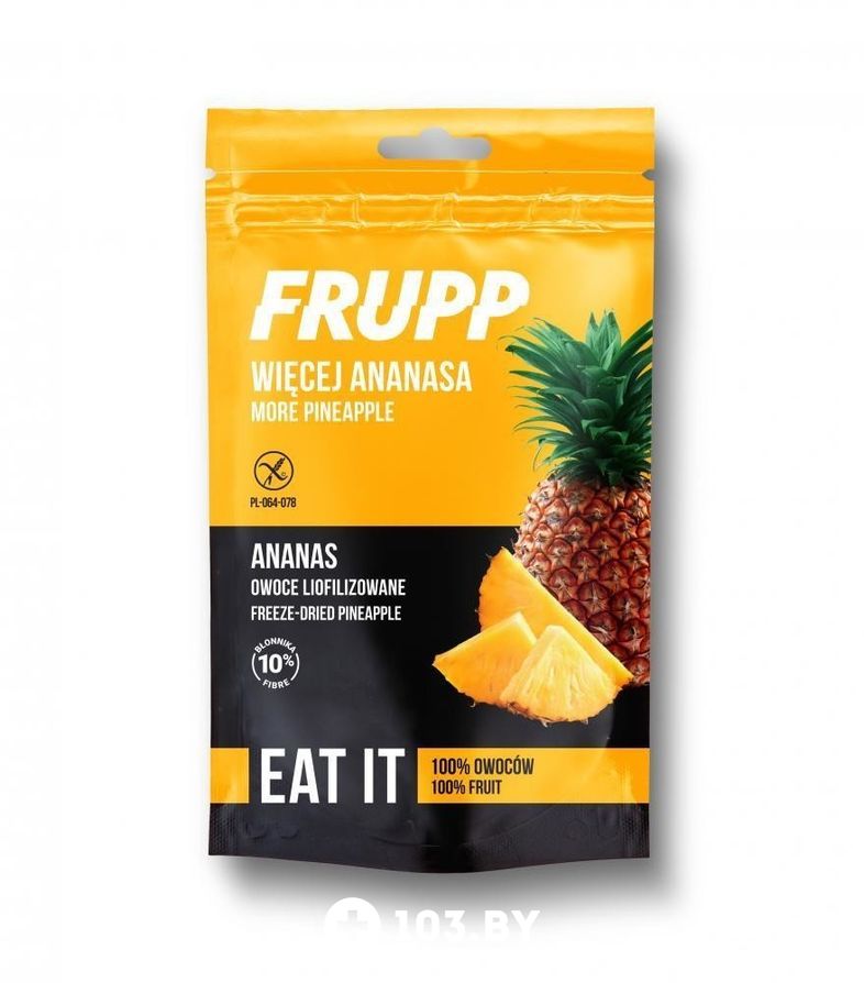 Реализация товара Сублимированный ананас кусочками, 15 г Frupp осуществляется только в стационарном торговом объекте по указанному адресу продавца. Информация о товарах и услугах на портале 103.by носит справочный характер и не является публичной офертой.
