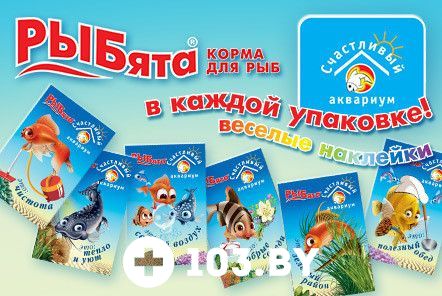 В каждой коробочке с кормом "РЫБята" вас ждет СЮРПРИЗ - яркая НАКЛЕЙКА с веселыми РЫБятами и их советами о том, как сделать жизнь в аквариуме счастливой и долгой.