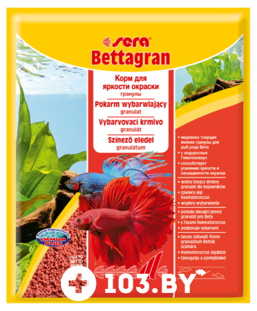 Sera беттагран – легко усваиваемый корм для яркости окраски, состоящий из мелких гранул; предназначен для всех видов рыб, кормящихся в средних слоях воды, в том числе великолепных бойцовых рыб (петушков).
