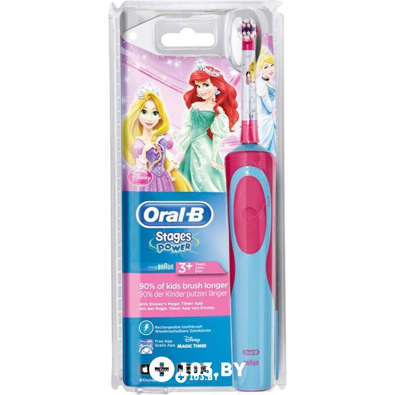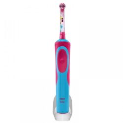 Рекомендована врачами-стоматологами к использованию детьми начиная с 3-х летнего возраста. Комплектуется зубная щетка насадкой, которая оформленная в стилистике популярного мультфильма. Это специальная детская насадка с мягкими щетинками Stages Power Princess, которая эффективно очищает зубы от налета и остатков пищи, не повреждая эмаль зубов и чувствительные дёсны. Насадка совершает вращательно-колебательные движения со скоростью 7600 оборотов в минуту. По мере износа щетинки обесцвечиваются, что говорит о необходимости замены. Кроме того, дети с большим удовольствием привыкают к чистке зубов именно с электрической зубной щеткой.