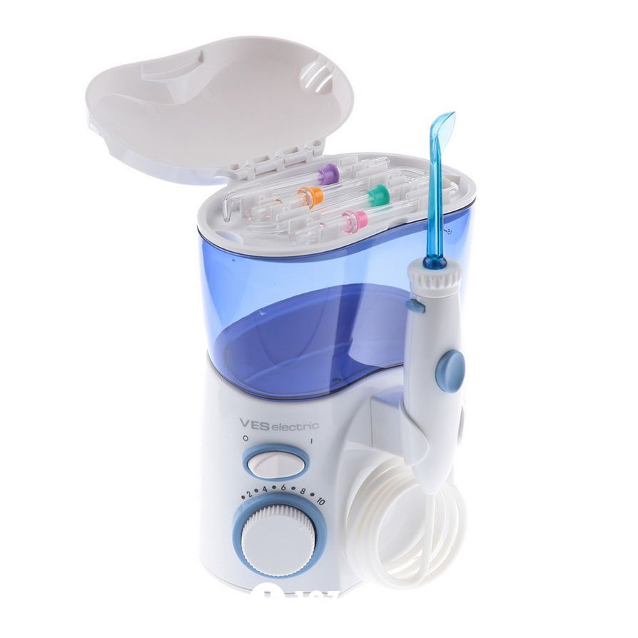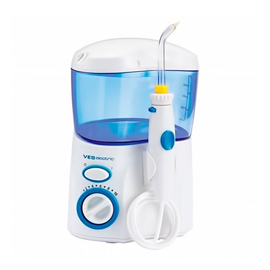 Стационарный ирригатор VES VIP-003 с повышенной мощностью и возможностью регулирования напора подачи струи, а также расширенной комплектацией, включающей в себя 9 насадок