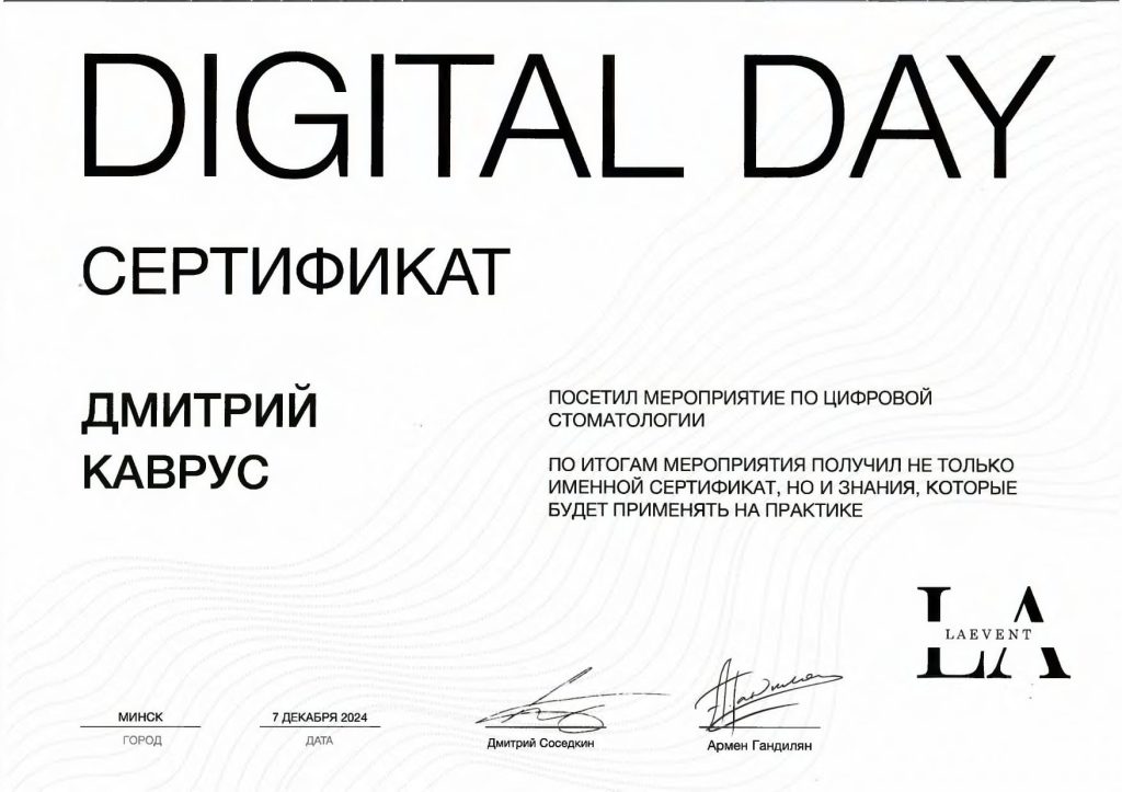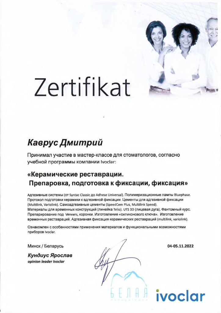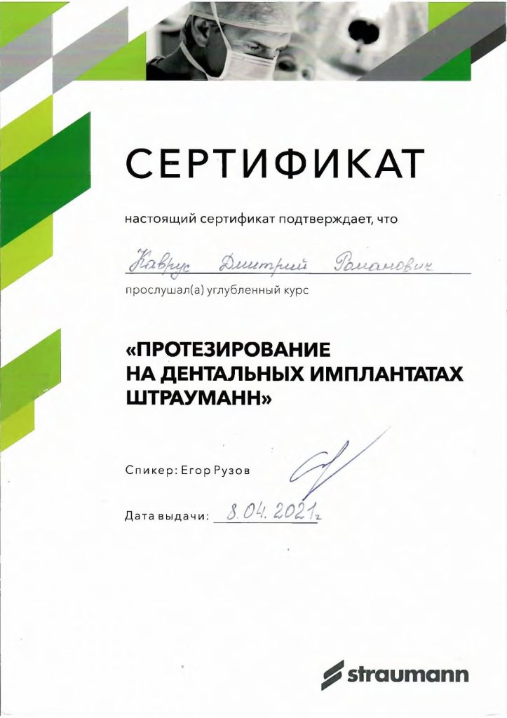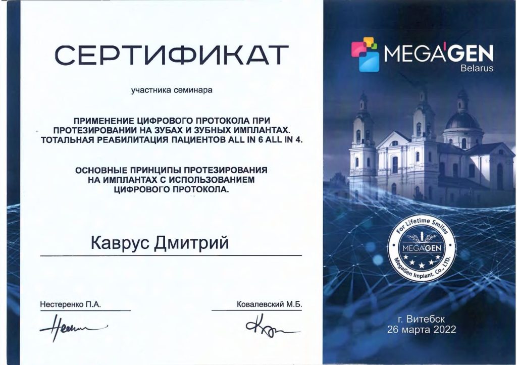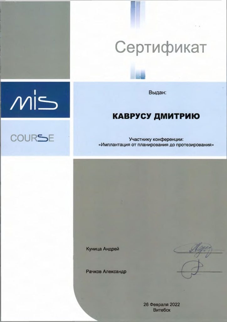 • 2021 г. — «Реабилитация пациентов с использованием дентальной имплантации», ГУО «БелМАПО».