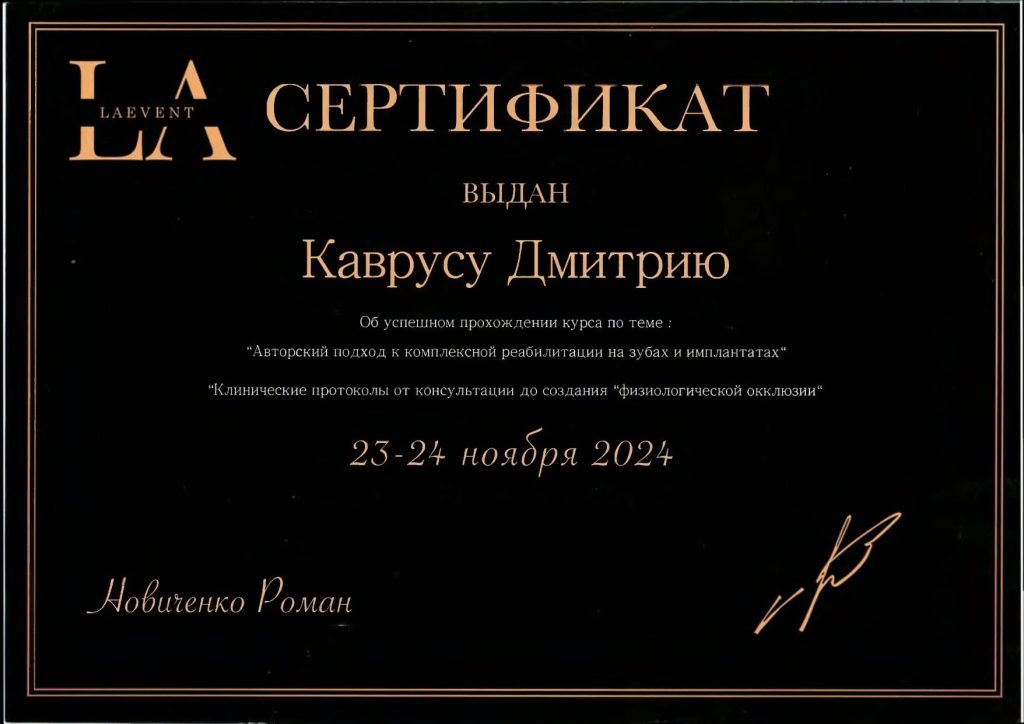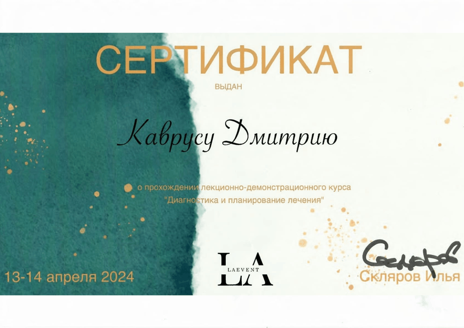 • 2023 г. — врач стоматолог-ортопед, сеть «ЭверестДент».
