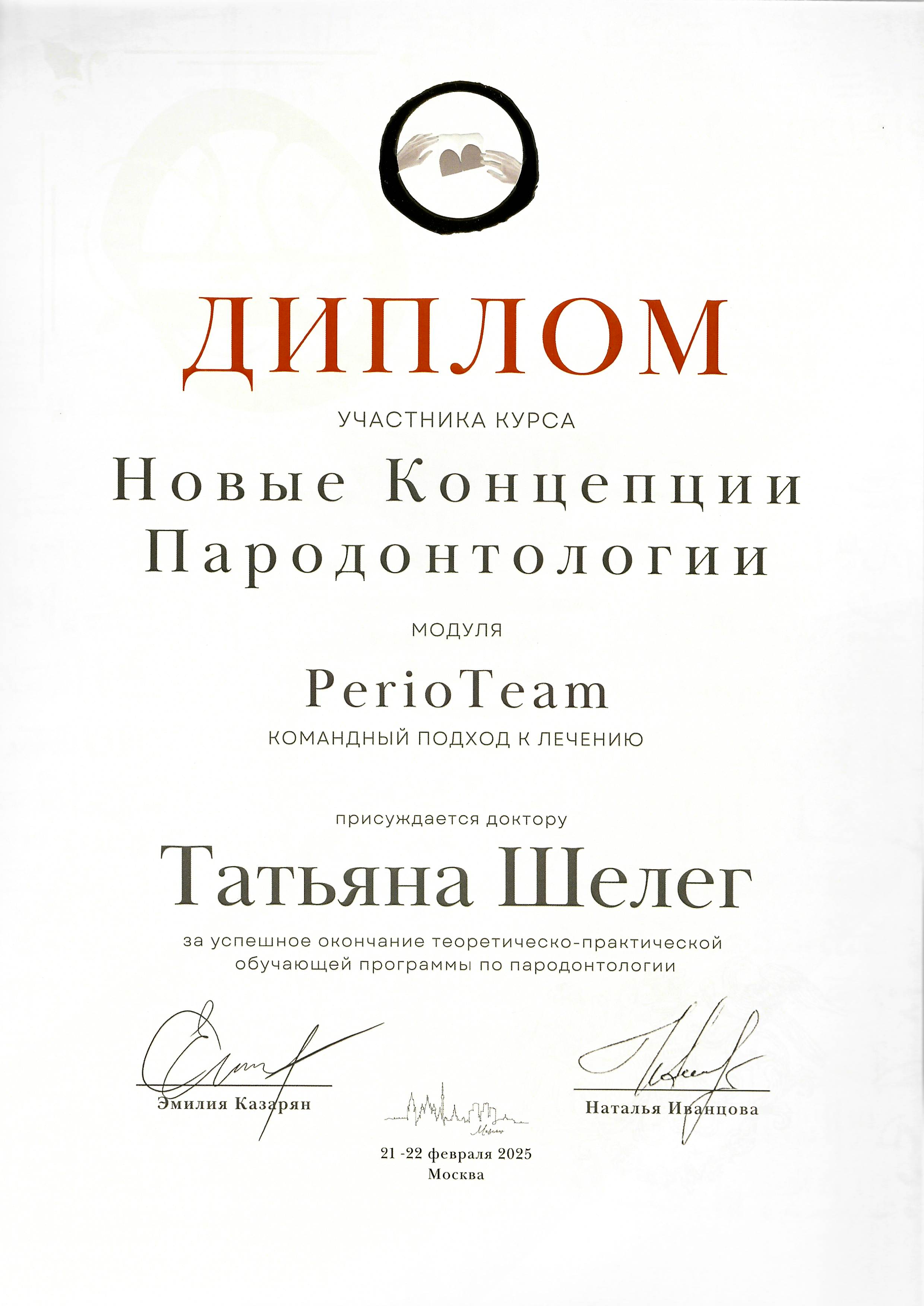 • 2014 г. — «Эстетическое микропротезирование передней группы зубов»;