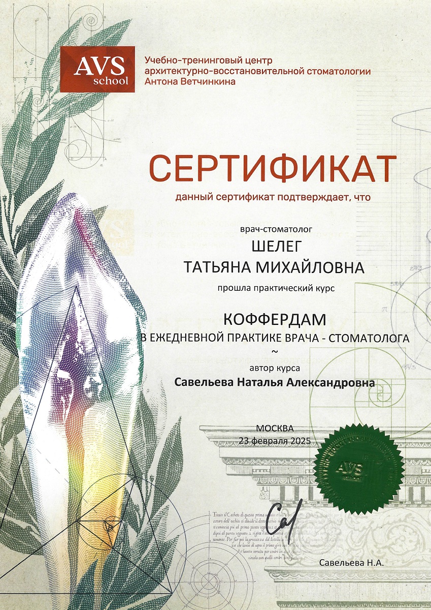 Была у прекрасной Татьяны Шелег. Замечательный стоматолог-терапевт! Всегда лечусь без анестезии, и при этом абсолютно ко...мфортно — врач работает очень аккуратно и бережно. Благодарю Вас за профессионализм и внимательное отношение!