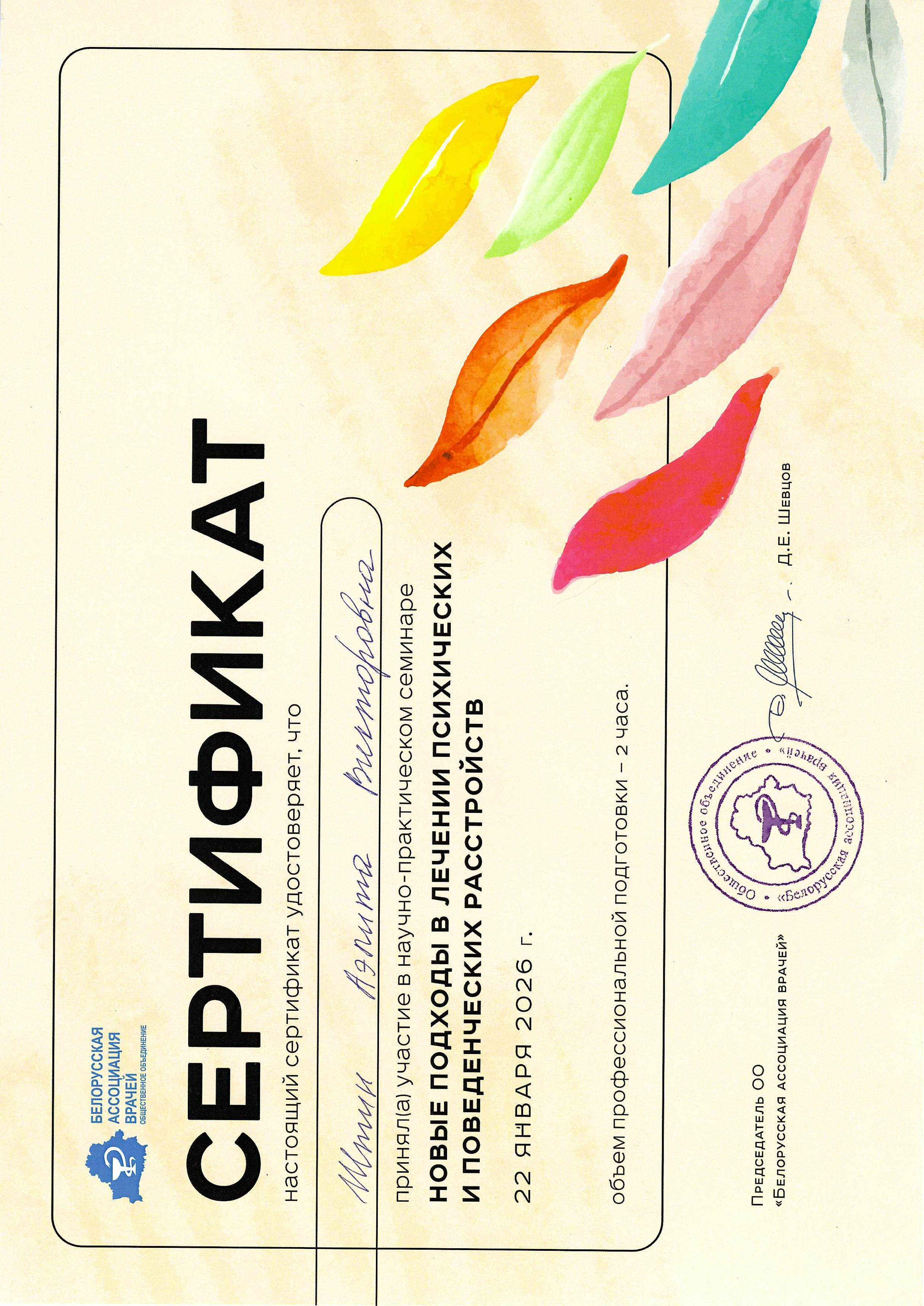 2008 г. — «Диагностика и лечение тревожных расстройств».БелМАПО