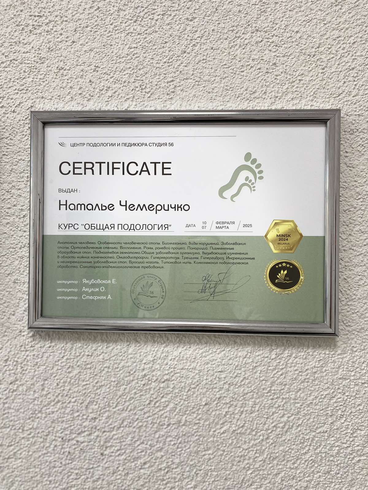 • 2024 г. — Сертификат курса по наращиванию на верхние формы Елены Колычевой