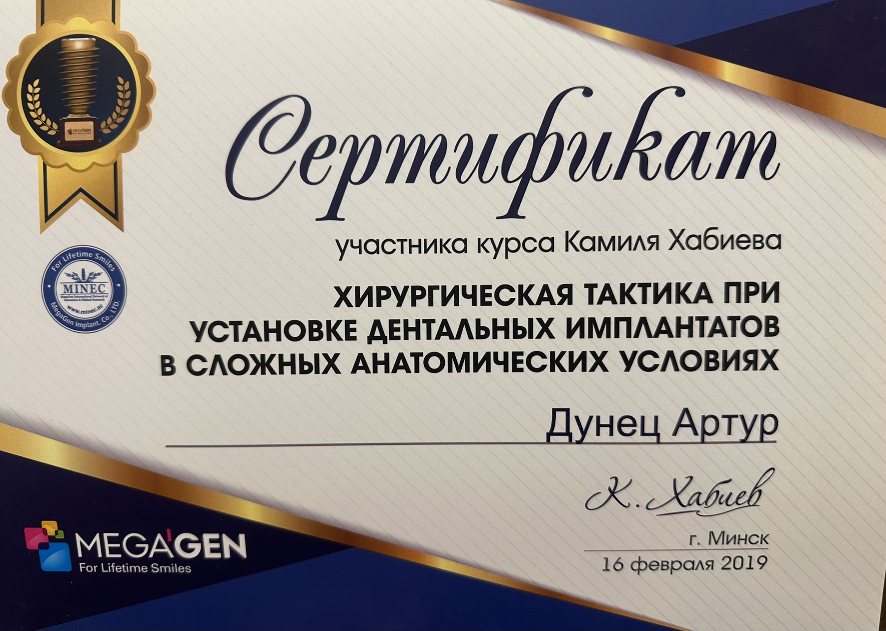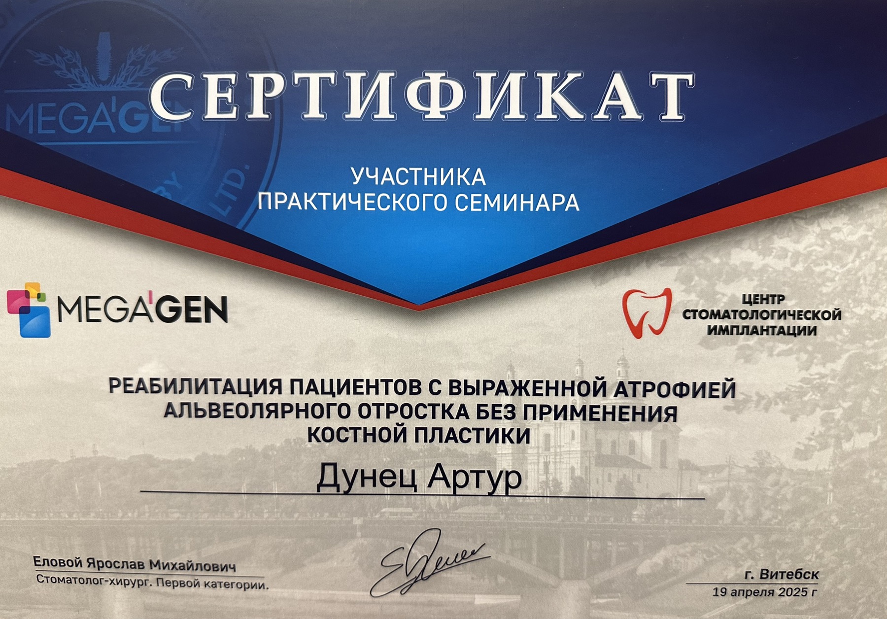 • 2016 г. — прошел интернатуру в УЗ «Витебский областной клинический стоматологический центр»