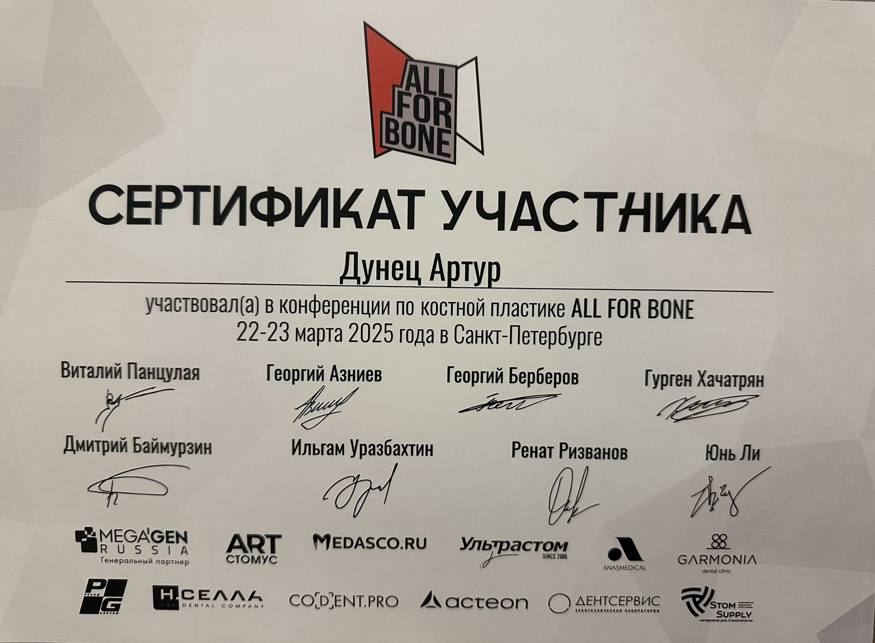 Сертификаты: