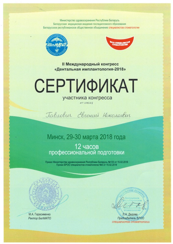 • 2018 г. — «Особенности ортопедического, ортодонтического и хирургического лечения заболеваний периодонта».