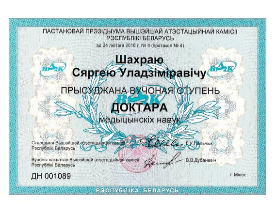 • 1996 г. — окончил Белорусский государственный медицинский университет