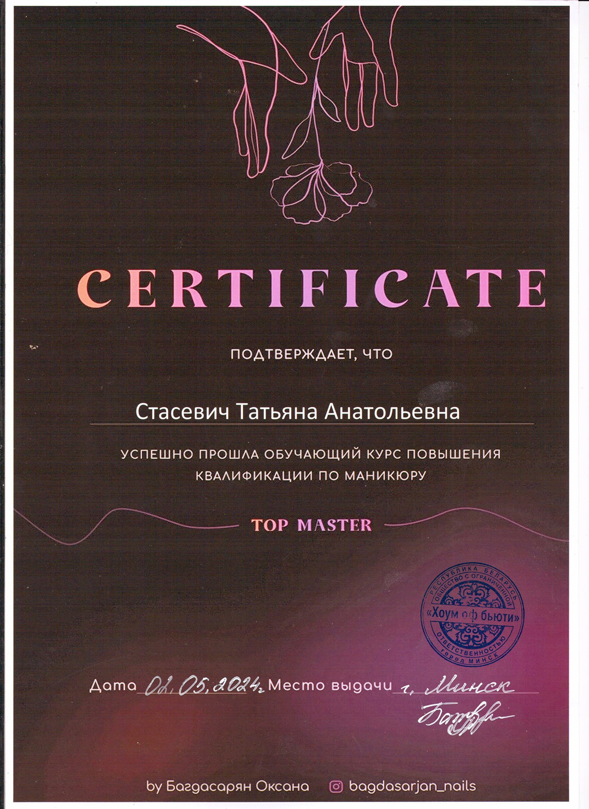 Человек-праздник, источник позитива и настоящий огонёк! Татьяна всегда знает, какой оттенок гармонично дополнит образ и как привести пяточки к мягкости и нежности.