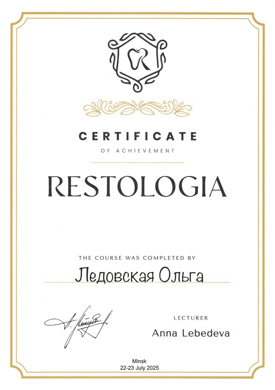 • 2005–2008 гг. — Клиническая ординатура по специальности «стоматология терапевтическая»