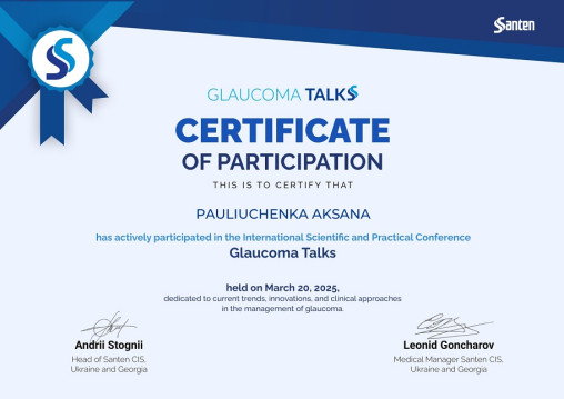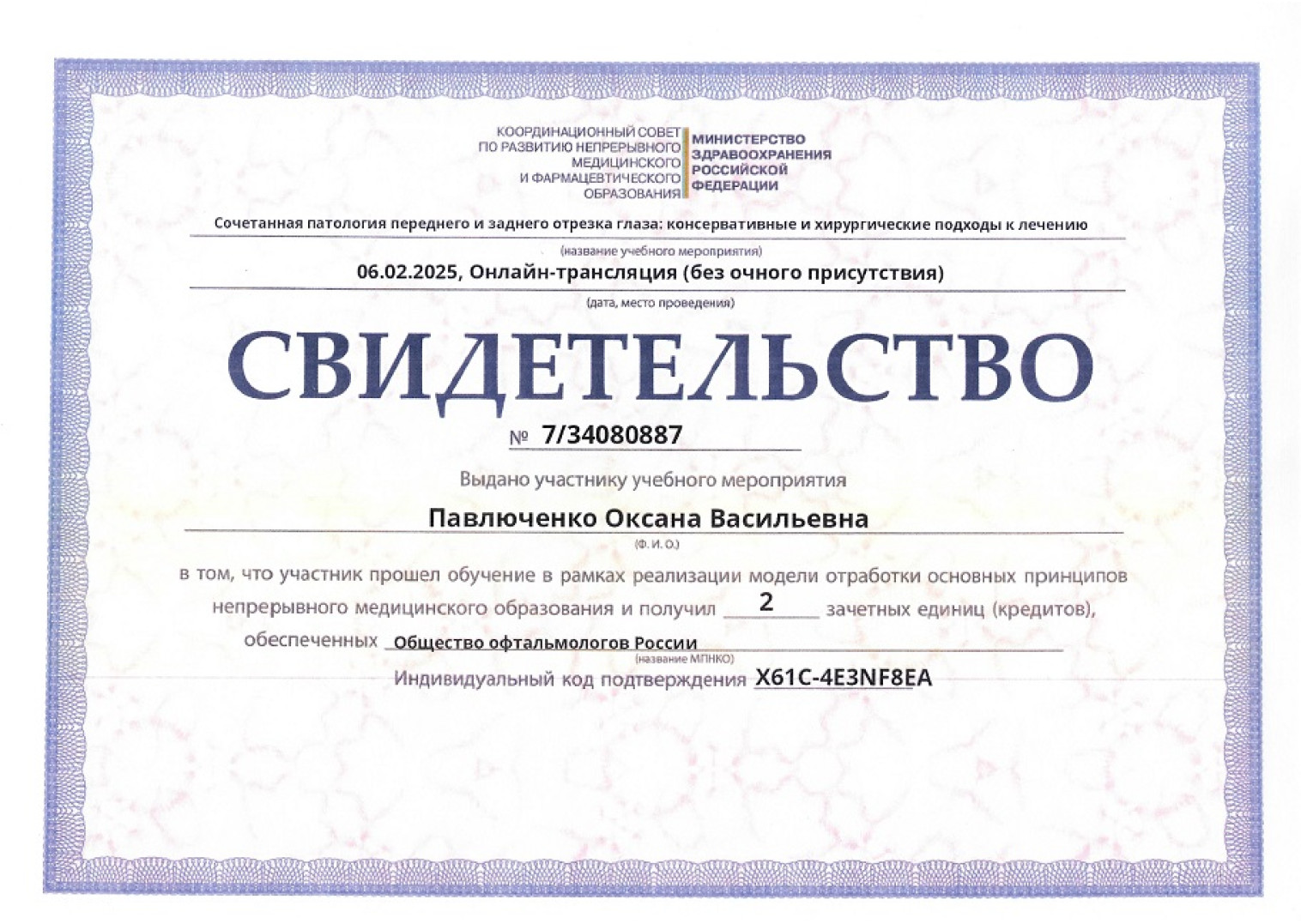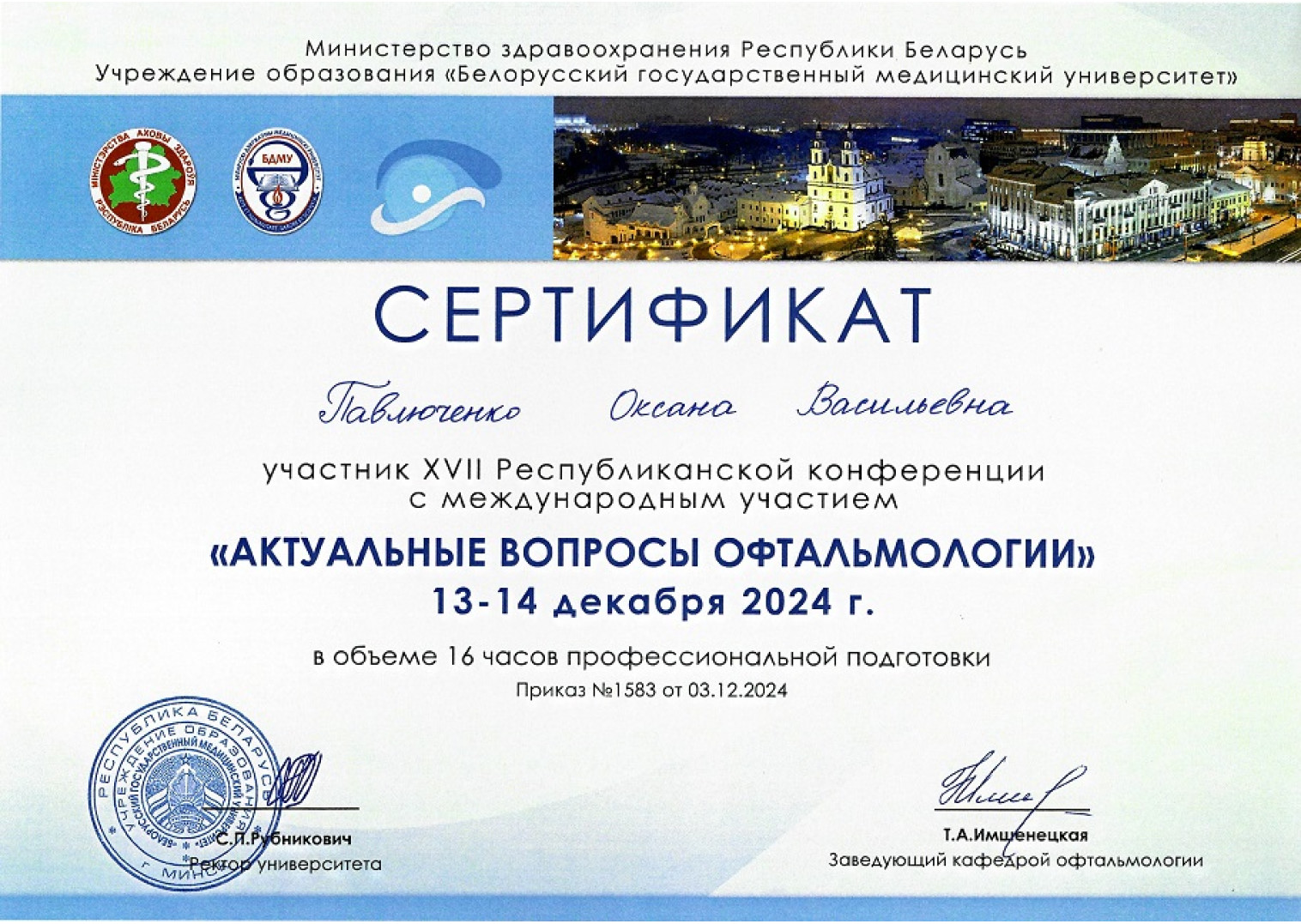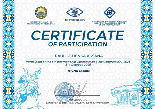 • 05.10.2015–03.11.2015 — Повышение квалификации по программе «Глаукома», (160 час.)