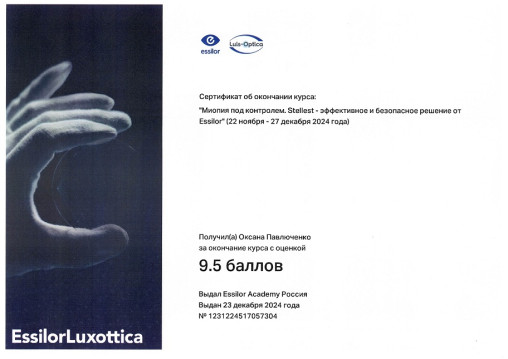 Хочу выразить благодарность врачу-офтальмологу Павлюченко Оксане Васильевне за внимательное отношение и профессионализм.... Мне и дочке очень понравилась врач и клиника.