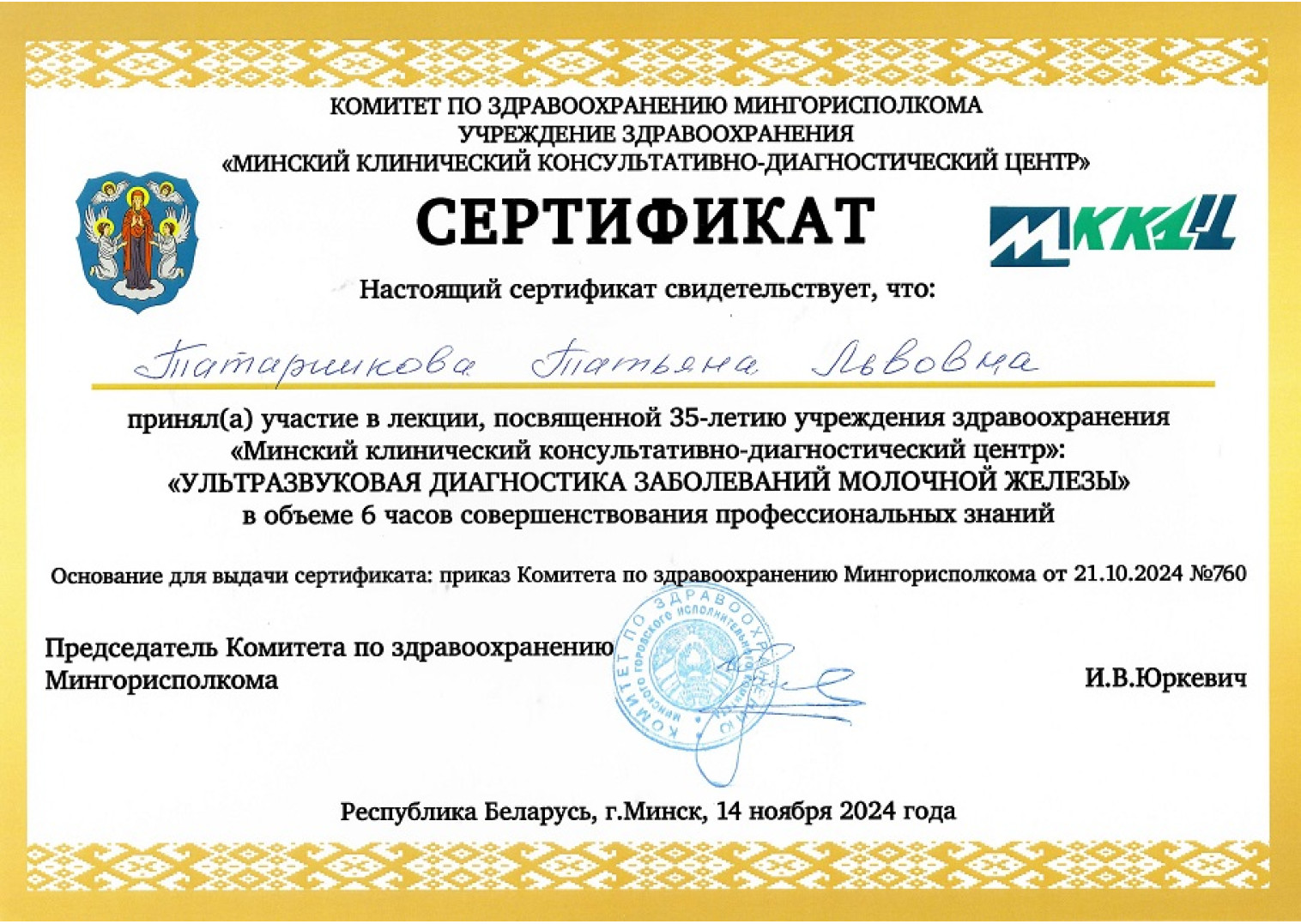 • 2024 г. — «УЗД заболеваний молочной железы», МККДЦ