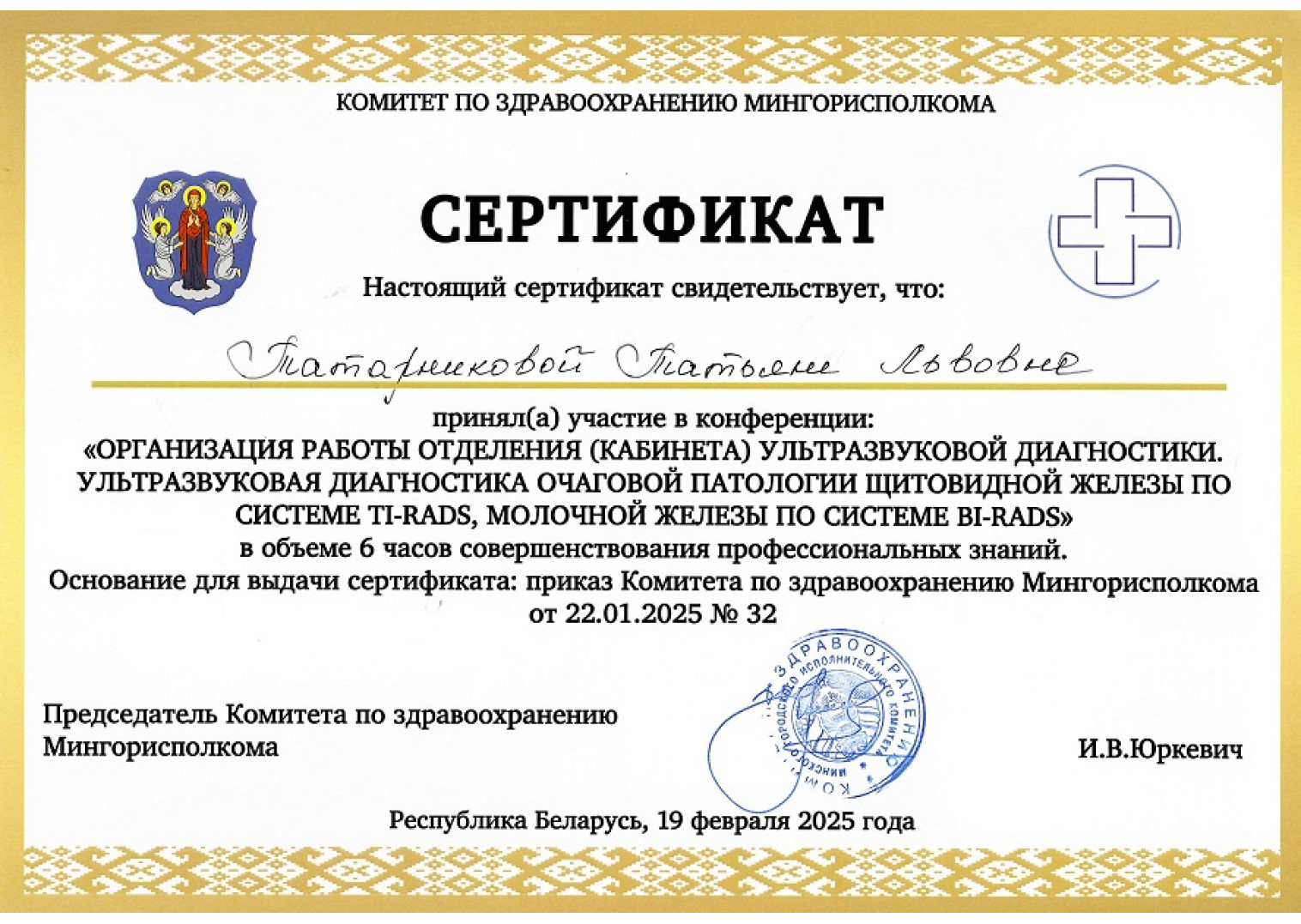 • 2025 г. — «УЗД очаговой патологии щитовидной железы, молочной железы», МККДЦ