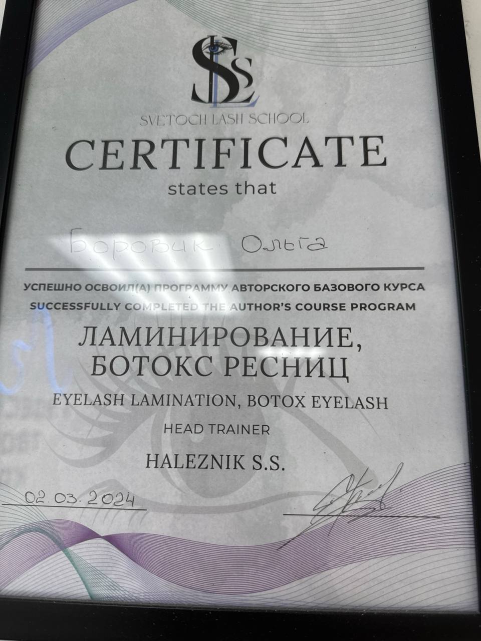 • 02.03.2024 — авторский базовый курс «Ламинирование, ботокс ресниц», главный тренер: Haleznik S. S.;