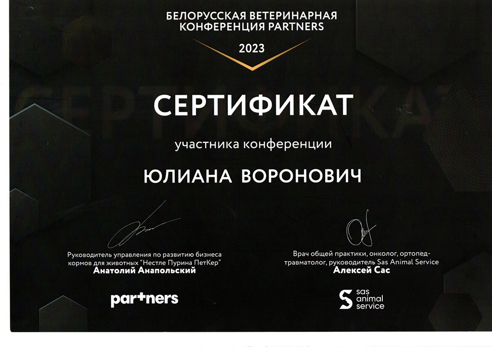 • август 2023 г. — Белорусская ветеринарная конференция «PARTNERS», г.Минск,