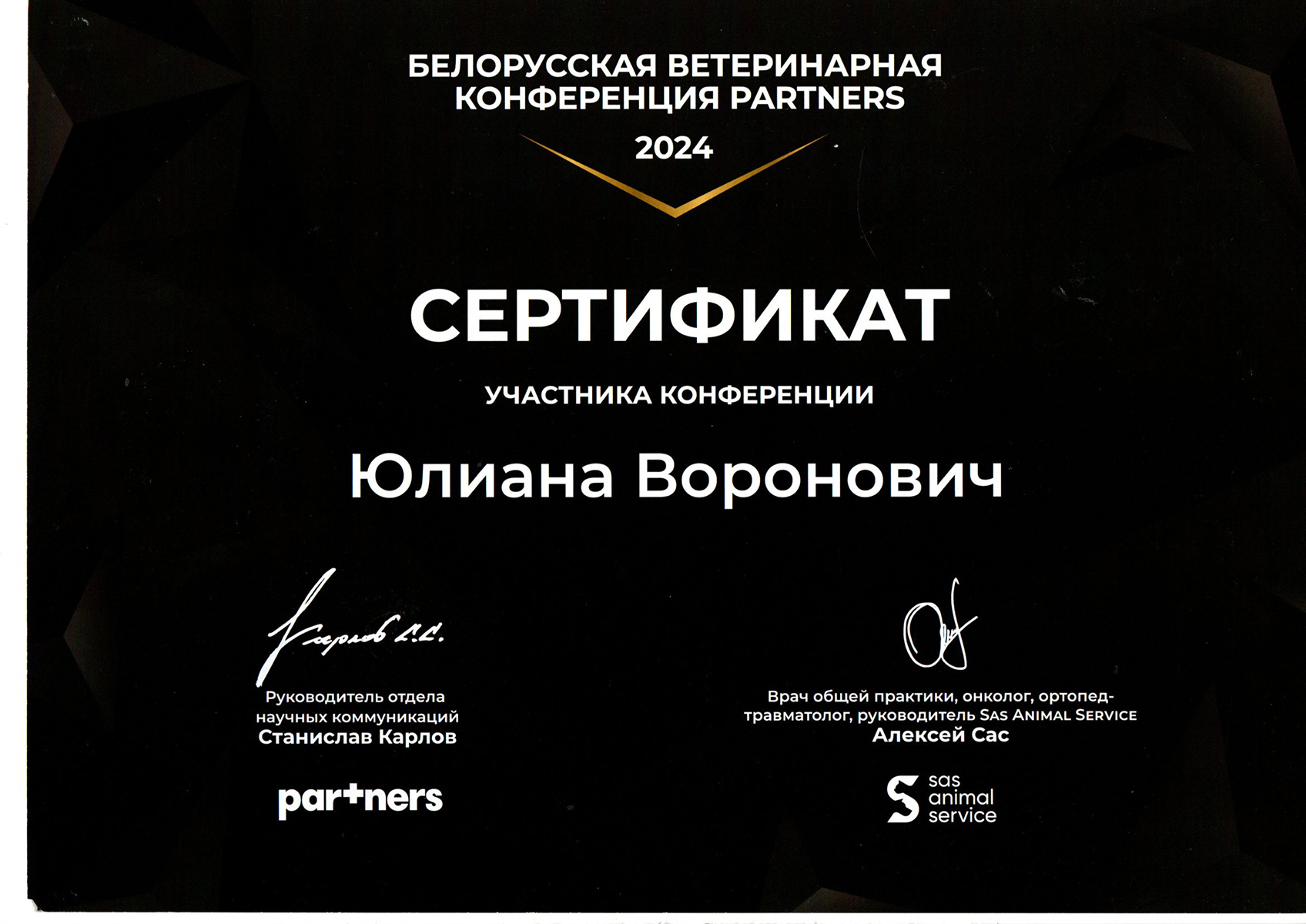 • август 2024 г. — Белорусская ветеринарная конференция «PARTNERS», г. Минск,