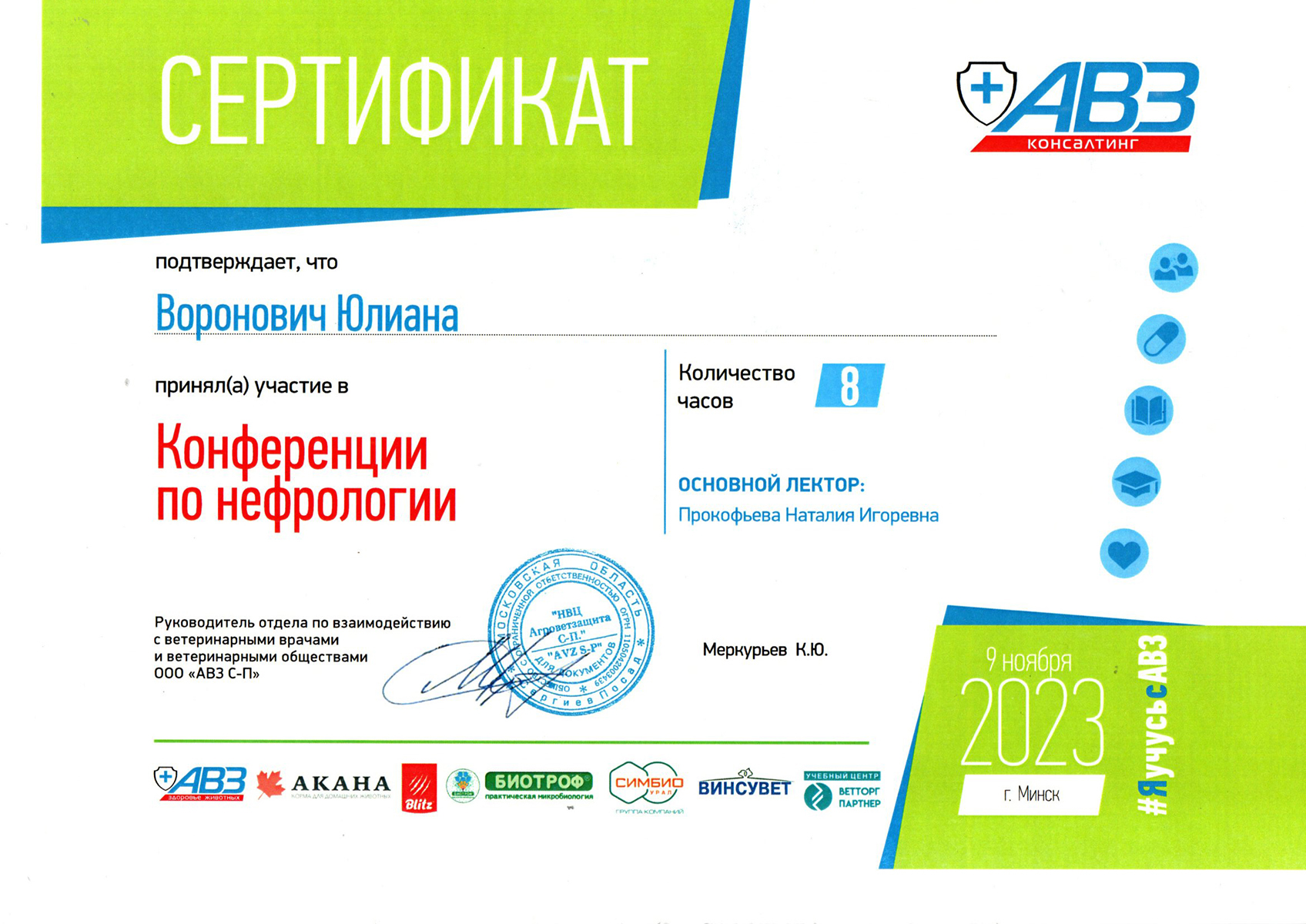 • ноябрь 2023 г. — Конференция по Нефрологии, АВЗ консалтинг, г. Минск,