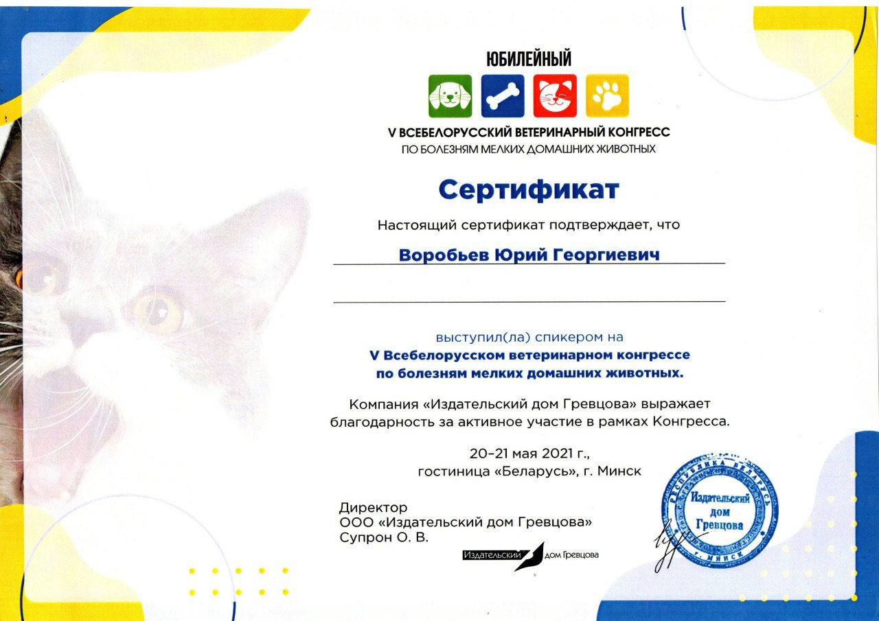 • май 2024 г. — в качестве спикера выступил с докладом «Увеит котов» на восьмом Всебелорусском конгрессе по болезням МДЖ, г. Минск,