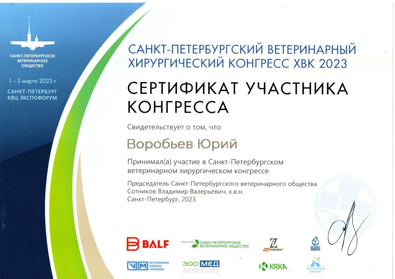 • март 2023 г. — Ветеринарный хирургический конгресс ХВК 2023, г. Санкт-Петербург,